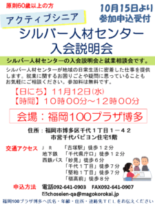 TOP  >  TOPお知らせ  >  【11/12】シルバー人材センター入会説明会