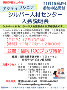 TOP  >  TOPお知らせ  >  【12/10】シルバー人材センター入会説明会